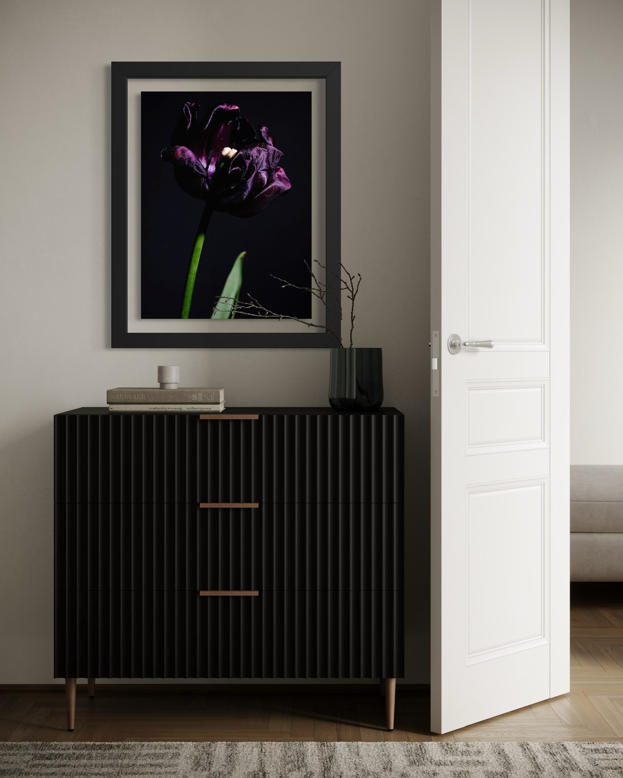 A meditation on beauty at its most elusive, Tulip Black Beauty captures the dark majesty of a fading bloom. Its deep violet-black petals glisten like polished stone, absorbing light rather than reflecting it — a quiet defiance of time’s decay. The flower’s withering edges whisper of impermanence, yet its form remains regal and poised, suspended between life and surrender.